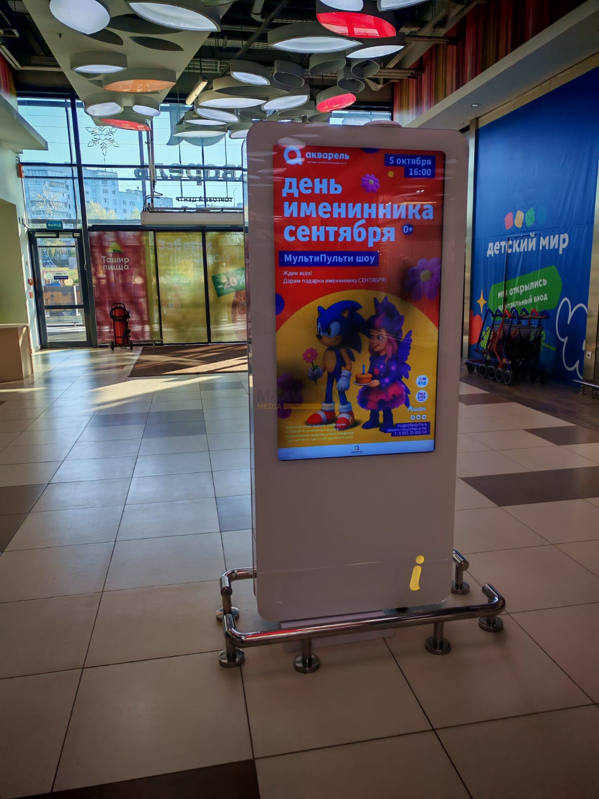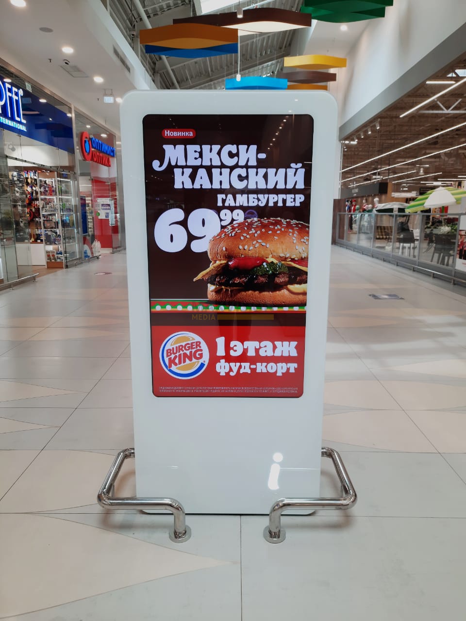 - чаще всего медиа стенды устанавливают в наиболее проходимых местах ТЦ и бизнес-центров, а именно на входе и холле;