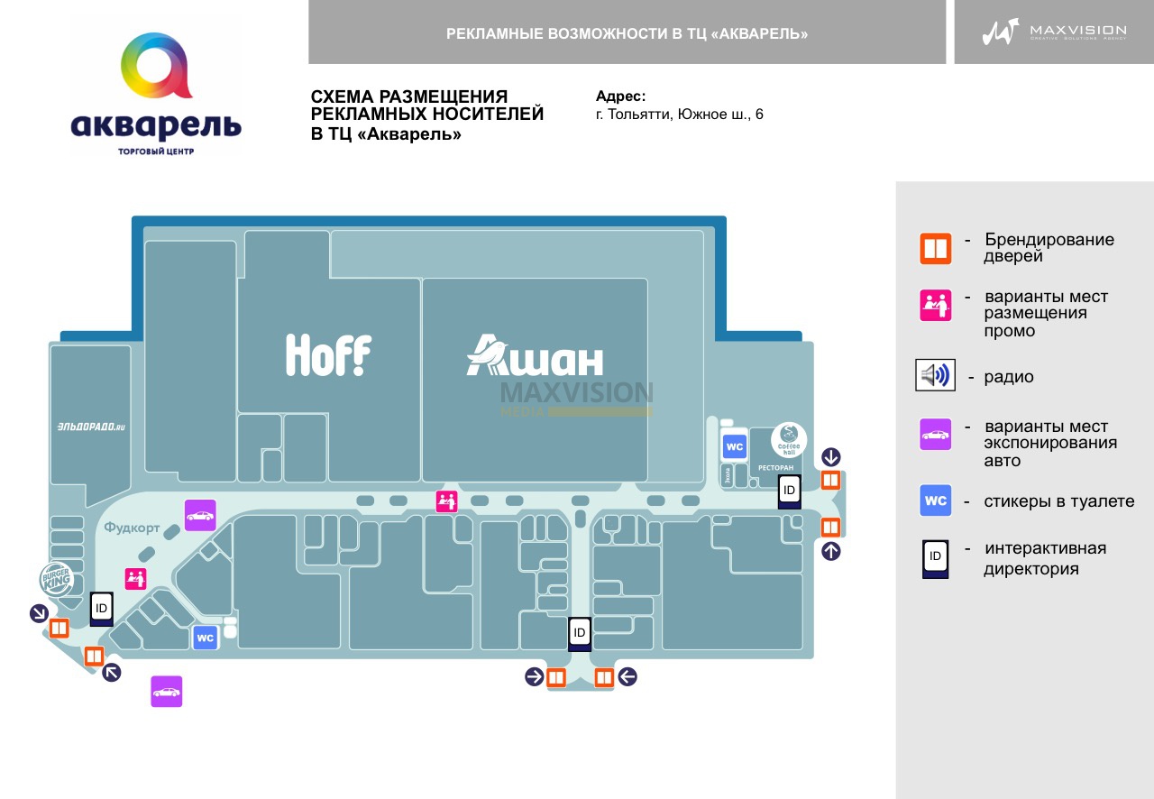 Желаете заказать размещение рекламных роликов на видеостойках? Тогда обращайтесь в специализированную компанию Max Vision Media™. Наша компания специализируется на эксклюзивной продаже рекламных возможностей в ТЦ. В штате нашей компании работают профессиональные и опытные маркетологи и другие специалисты по рекламе.